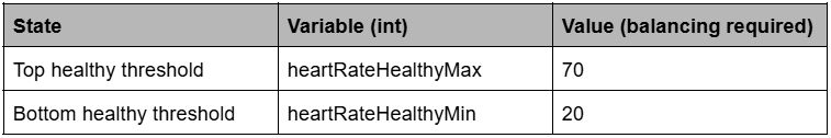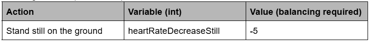 When the player’s current heart rate value (heartRateCurrent) is outside this range, the following behaviours will trigger: